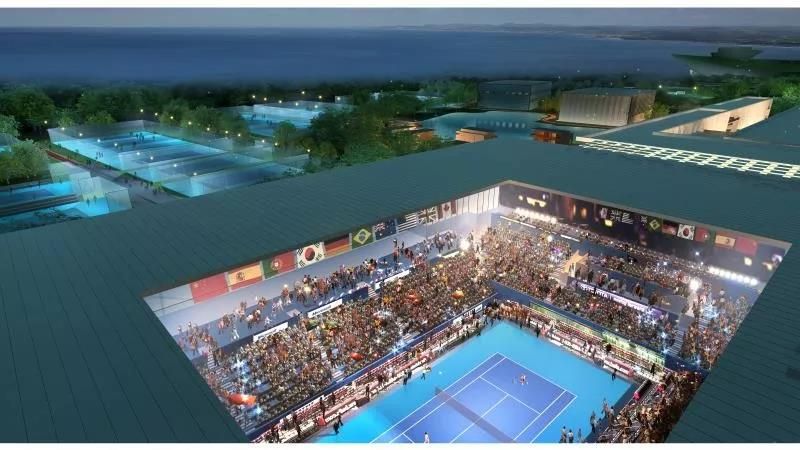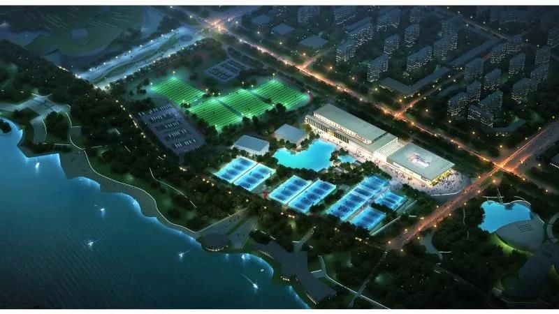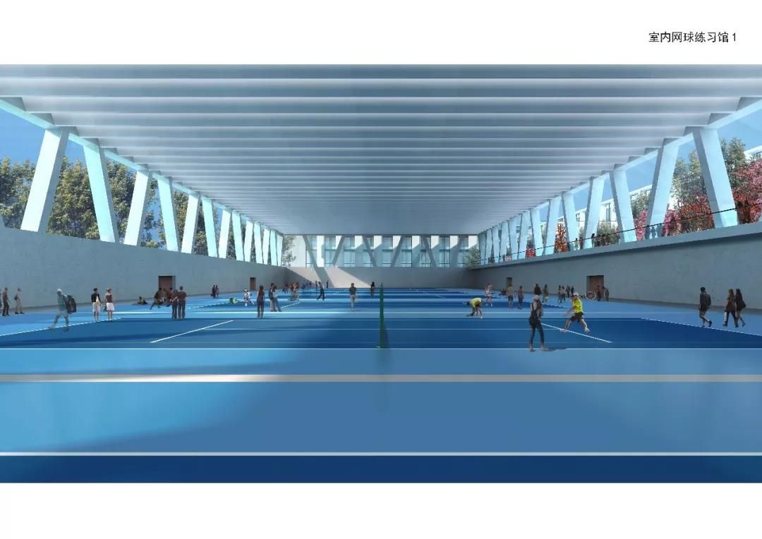 主要建設中心賽場,室內網球練習館(含常規(guī)場地、網球中心配套用房、VIP室內場地及其配套服務用房、學員公寓)單跨跨度約42米,室內網球練習館(紅土場地),籃球館,教員公寓,室外網球比賽場,室外網球練習場及地下停車場。
