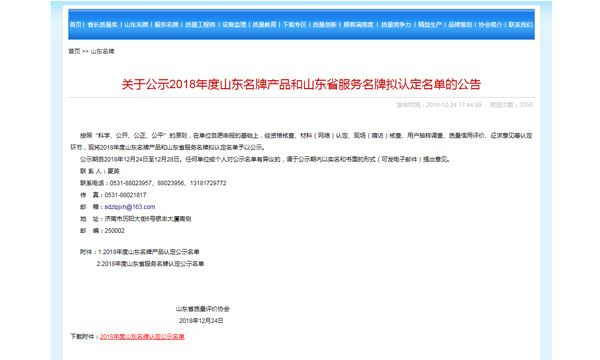 祝賀我公司2018年度“山東名牌”產品通過認定
