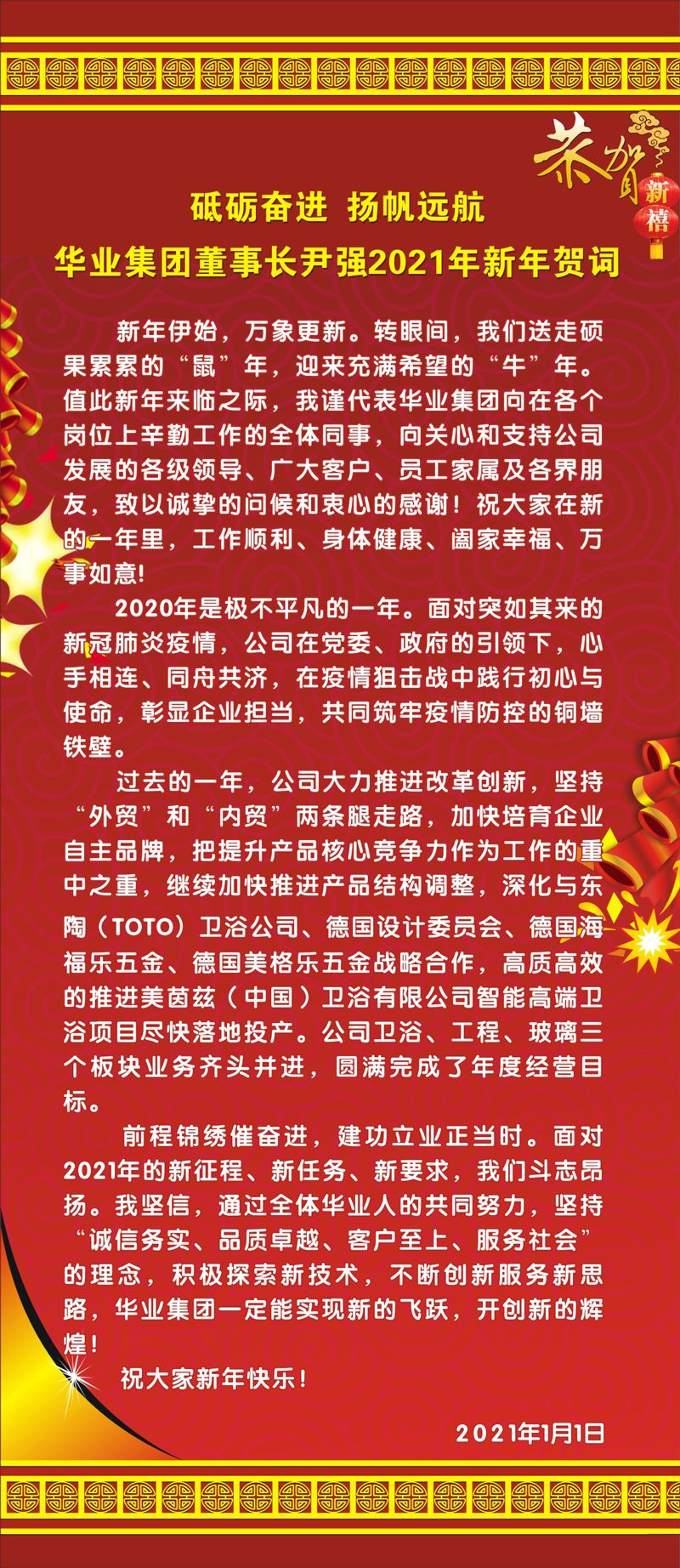 砥礪奮進 揚帆遠航丨華業(yè)集團董事長尹強2021年新年賀詞